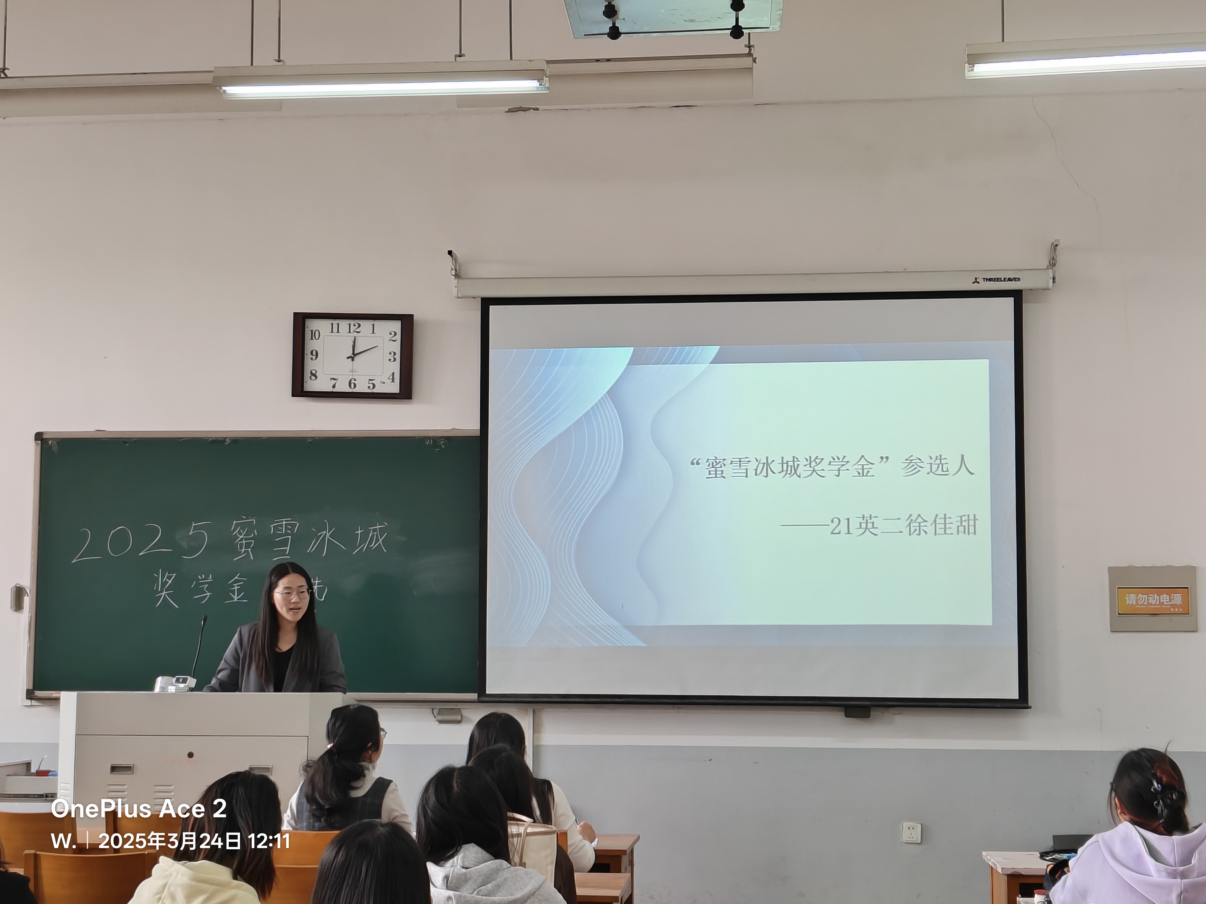 评选现场,候选学生依次进行自我介绍和个人展示,从学业成绩、社会实践等多个维度阐述自己的优势。由学院辅导员武宗励老师和侯彦冰老师担任评委,她们严格依据既定的评选标准,秉持公开公正的态度,对每一位候选人进行认真评估和打分,整个过程透明规范。