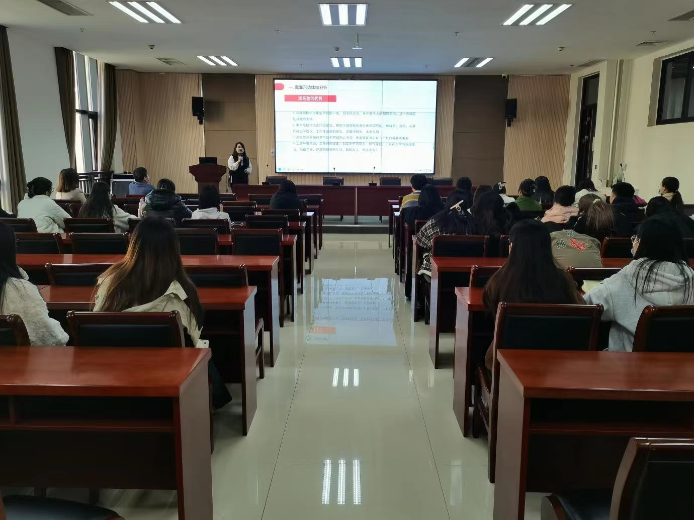 专场硕士研究生职业规划宣讲会在龙子湖校区召开。高校学汇教育负责人及宣讲人出席,近百名硕士研究生参加此次宣讲会。