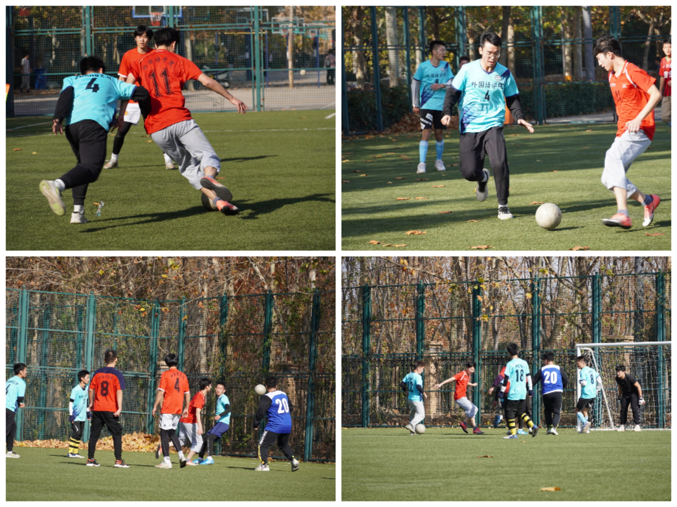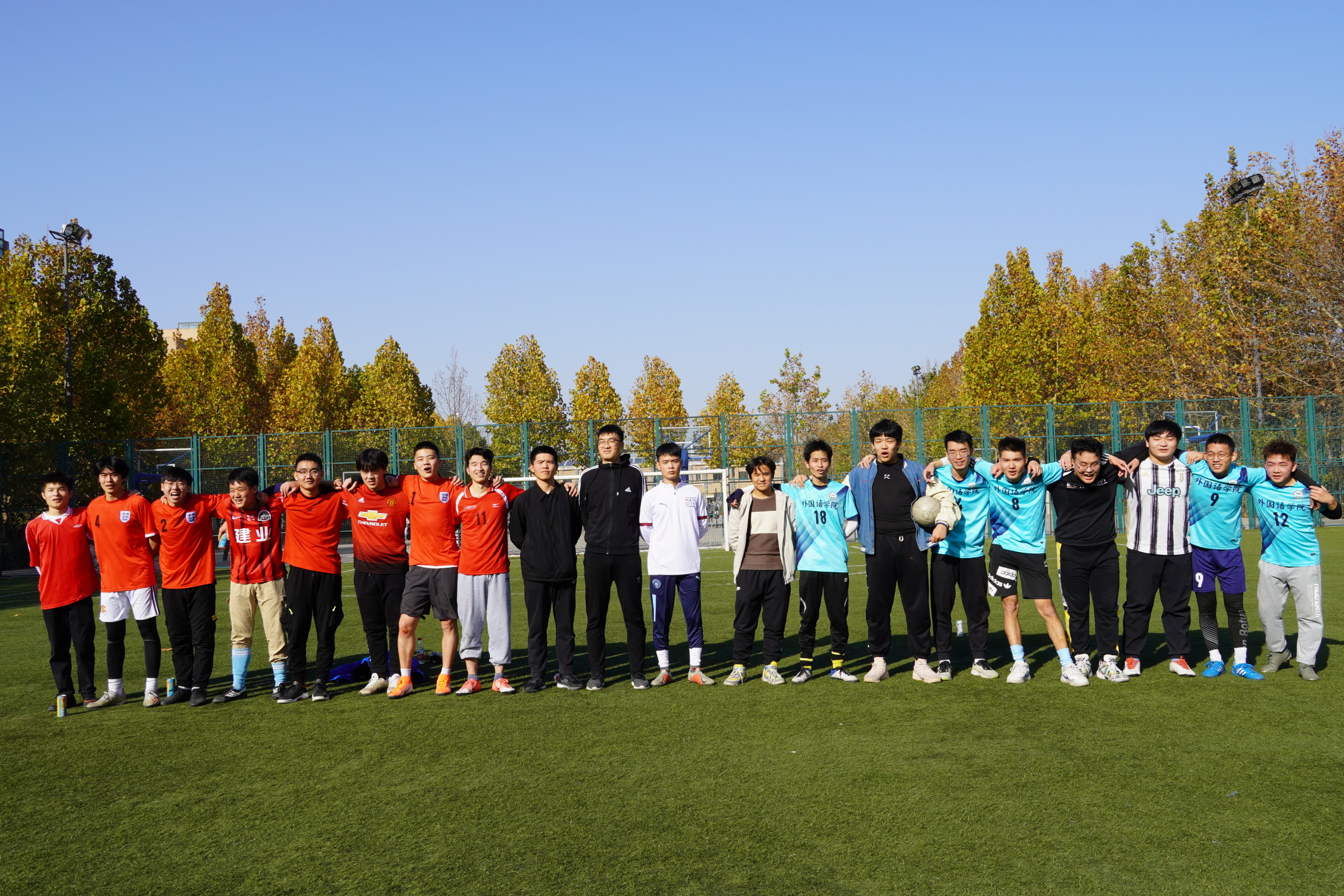 在龙子湖校区足球场举行“外语杯足球赛”。学院团委副书记冯超和辅导员穆君怡携观众到场参观比赛。