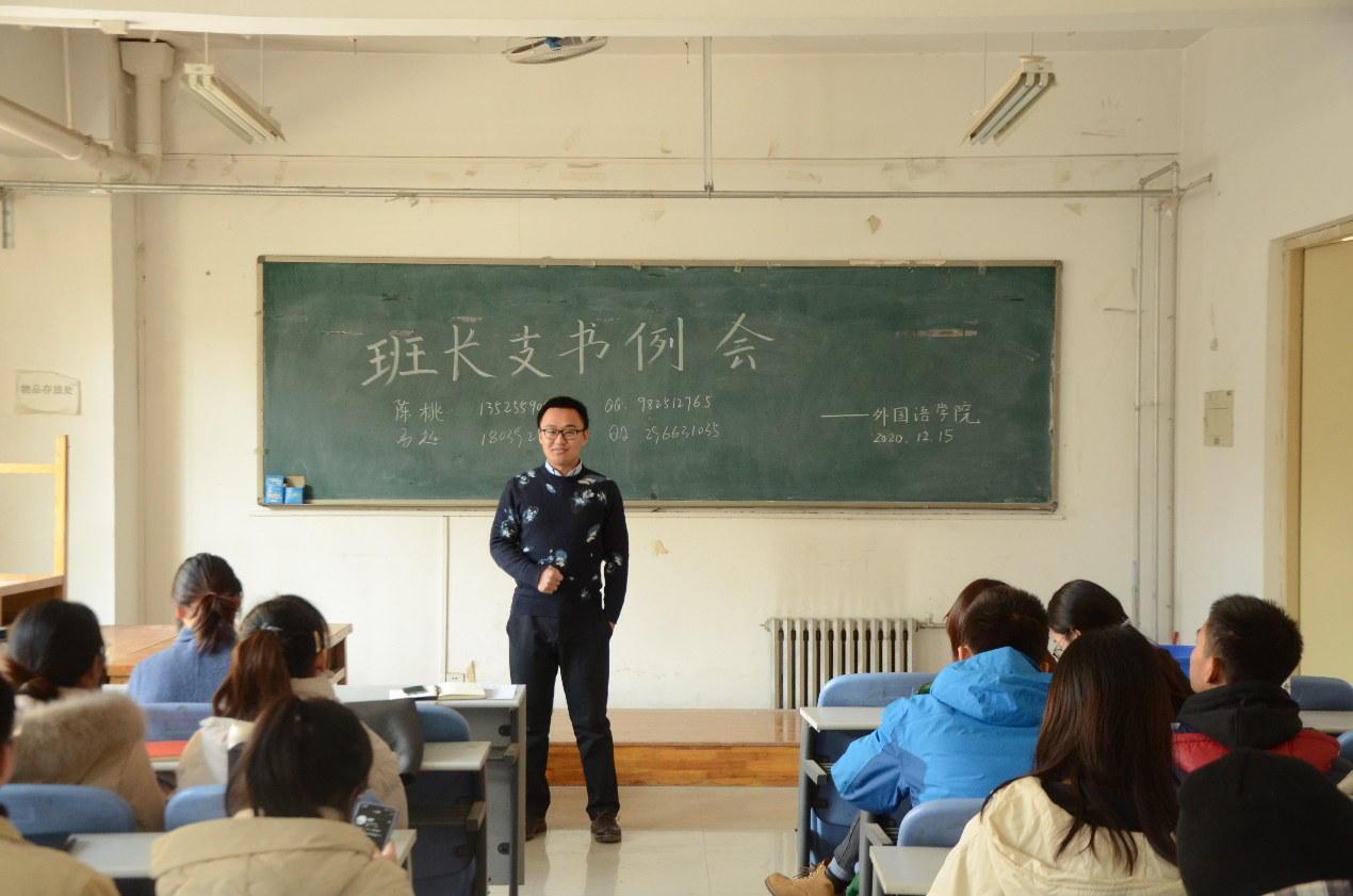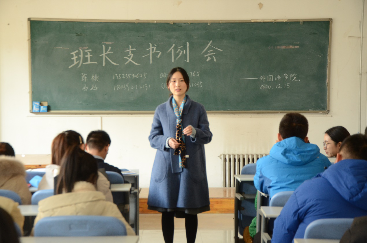 本网讯 (审稿:陈桃 供稿:王莉)为统筹部署近期各项事务,更好的安排学院下一阶段的学生工作,12月15日中午12点半,我院于龙子湖校区海棠园202自习室召开了本学期第十二次班长支书例会。团委副书记陈桃、冯超、辅导员牛烁携主要学生干部及各班班长支书参加此次例会。