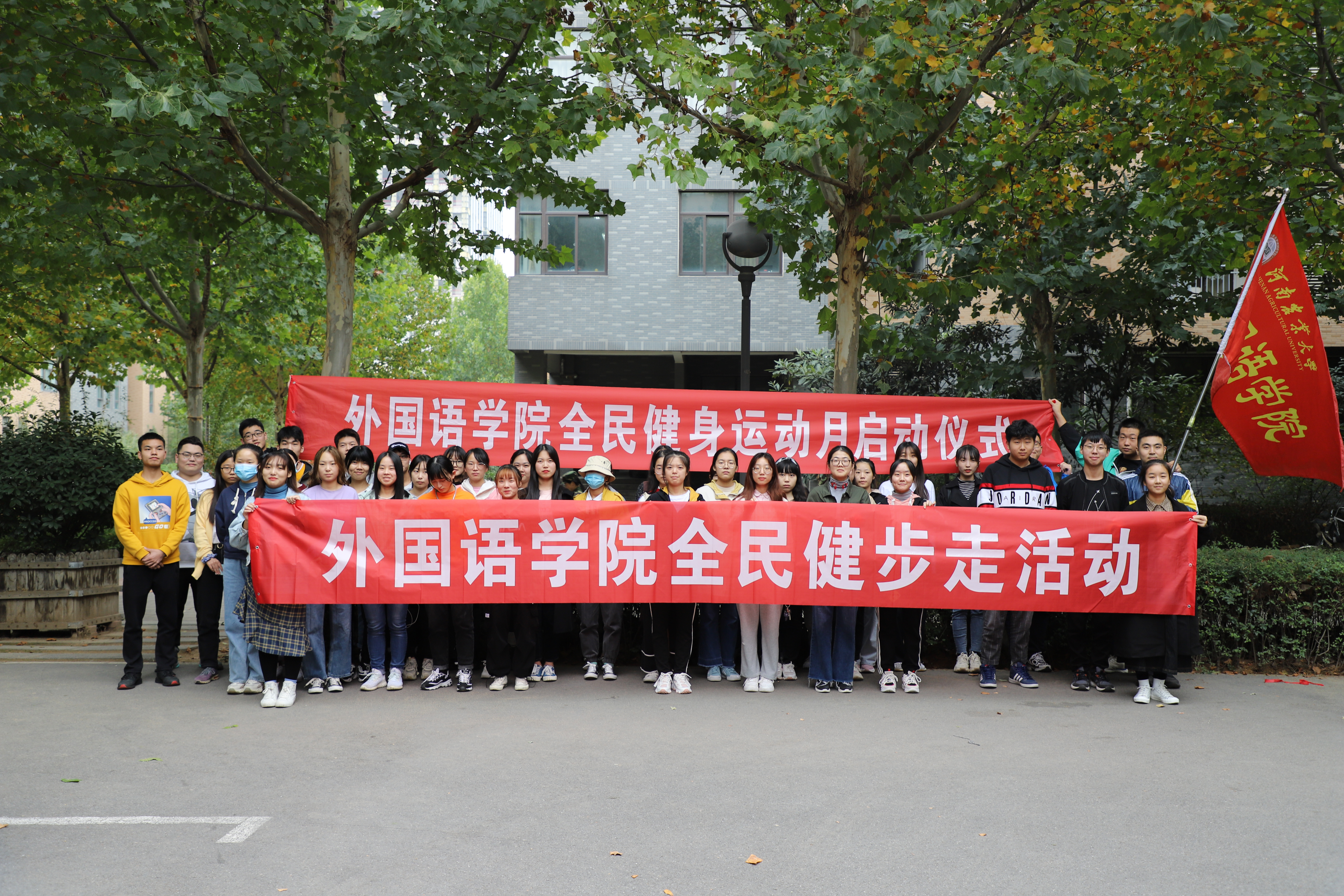 广大学生的文体生活,践行绿色出行,健康中国理念,10月20日下午两点半,我院在龙子湖校区一餐厅广场举行了全民健步走活动暨全民健身月启动仪式。团委书记李沛,辅导员王颖、闫雪茹携主要学生干部及参赛选手参与了此次活动。