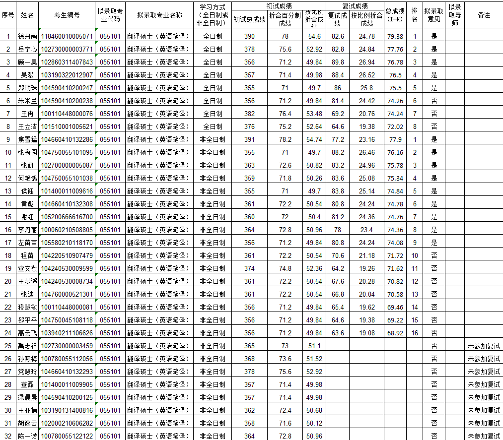 大奶做爱 2020年翻译硕士复试名单(调剂)