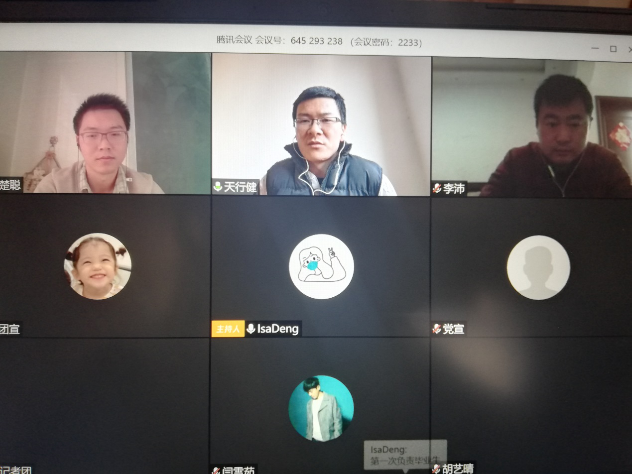 会议主要围绕疫情防控、近期学生工作、毕业生工作等内容展开。首先,邓然宣读2020届毕业生网络双选会公告,安排部署了近期毕业生网上招聘和毕业生业务线上办理有关工作。接着,团委书记李沛向大家传达了学校、学院关于做好开学前学生疫情防控工作的有关通知,安排部署了近期学生工作和开学前有关准备工作。他强调党员干部和广大团员要积极配合当地政府安排,自觉参与疫情防控工作、做好个人防控工作和开学前准备工作。随后,他针对毕业生工作中的就业工作、档案工作等进行了梳理。