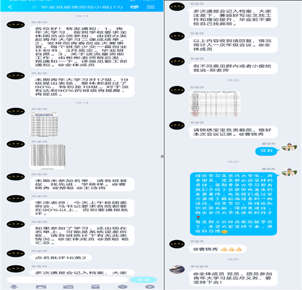 (通讯员:邓然)为加强我院毕业班学生思想政治建设和班团建设,推动疫情期间毕业生各项工作的有序进行,3月10日晚,16级年级辅导员邓然组织本年级班长支书召开16级线上班长支书例会。